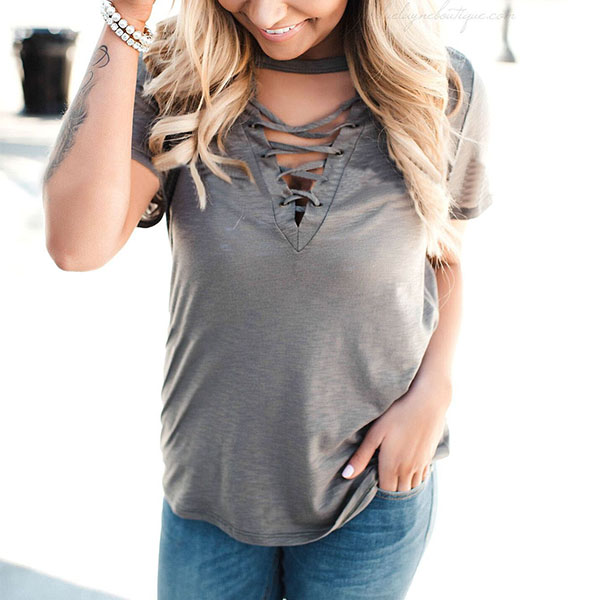 lace-up v-neck and crafted from soft and breathable fabric,this t-shirt can easily bring you a casual and fashionable