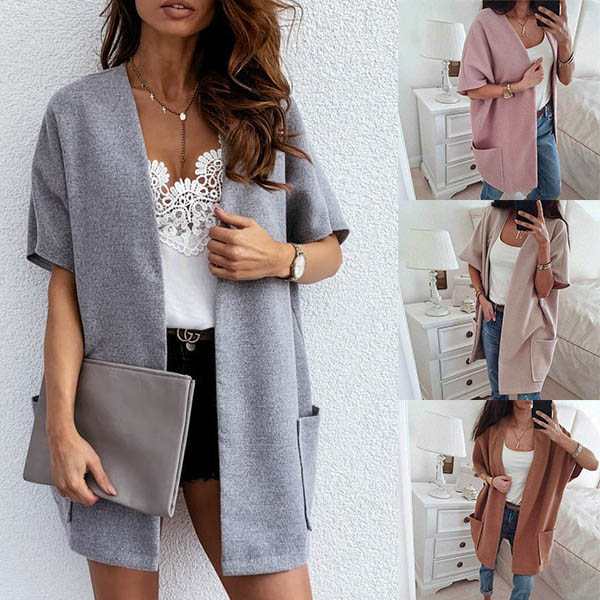 Fashion Solid Color Short Sleeve Loose Cardigan