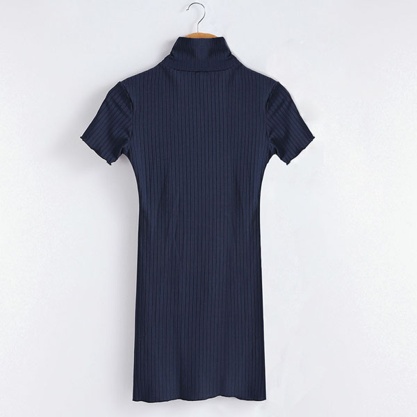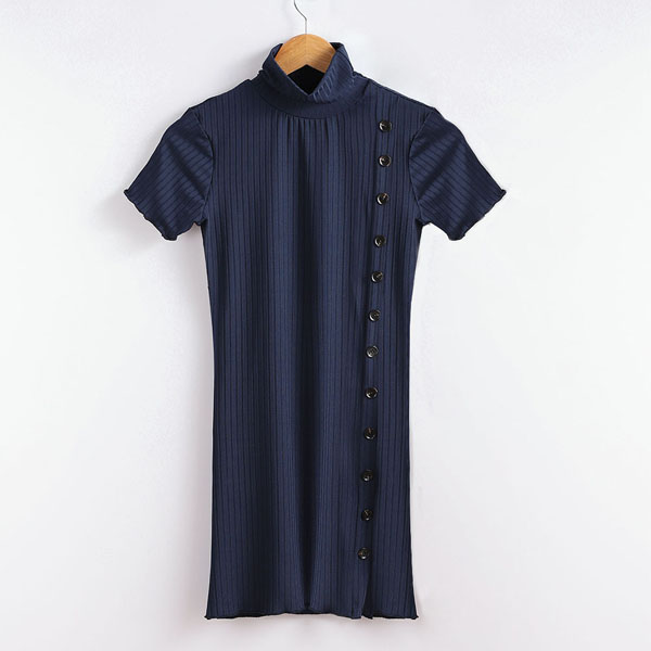 Fashion Solid Color Short Sleeve Mock Neck Side-button Slim Fit Knit Dress