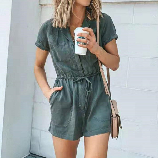 A cool way to incorporate comfort as well as style into your everyday look is by adding this romper to your ensemble . Crafted in a solid color,with short sleeve,notched lapel and front-pocket design,simple,classic yet stylish. The high waist with drawstring design will portray your waistline and slender figure. It is worth to be your wardrobe staple in these summer days.