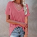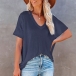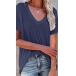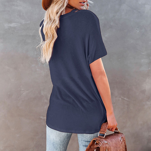 Fashion Solid Color Short Sleeve Off-shoulder V-neck High-low Hem T-shirt