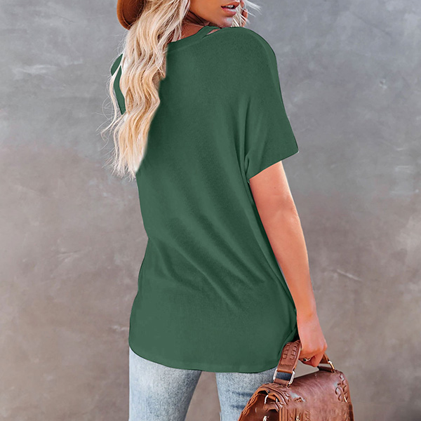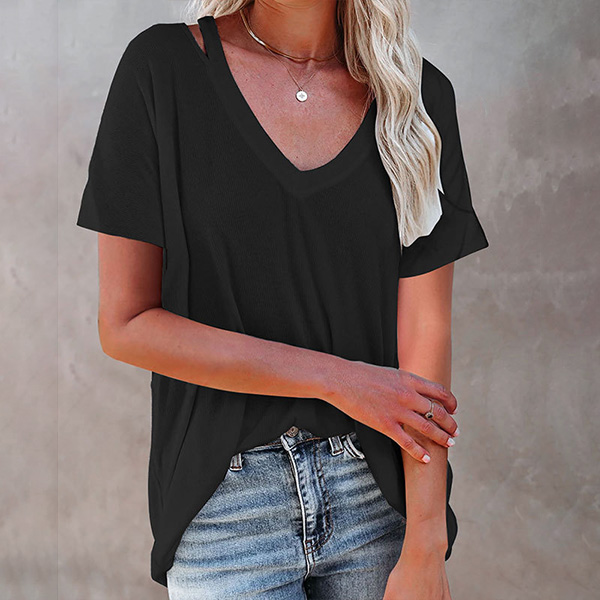 If you are looking for a different style t-shirt,then look no further than this piece. Boasts a solid color,the v-neck,off-shoulder and high-low hem design break the simple,classic design style,which can easily enhance the entire charm. Meanwhile,the soft,breathable fabric and loose silhouette design can ensure a comfortable day. So why not take interest in it?