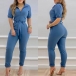 Fashion Solid Color Short Sleeve POLO Collar High Waist Slim Fit Jumpsuit