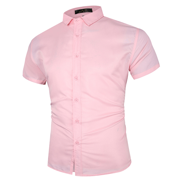 As a wardrobe essential,this shirt can give you a handsome look while maintaining your male appeal.Solid color style,finished with short sleeve,POLO collar,single-breasted and a fit silhouette,classic,cozy yet stylish. A good choice for your workdays or some formal occasions.