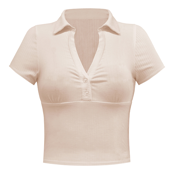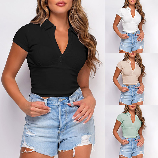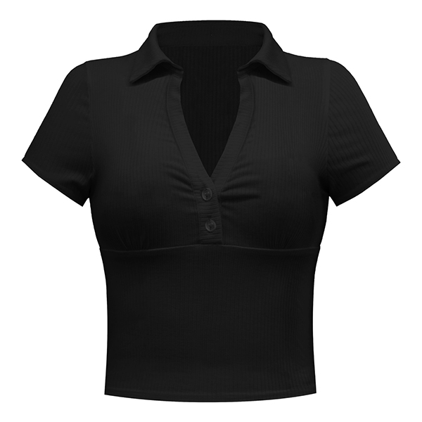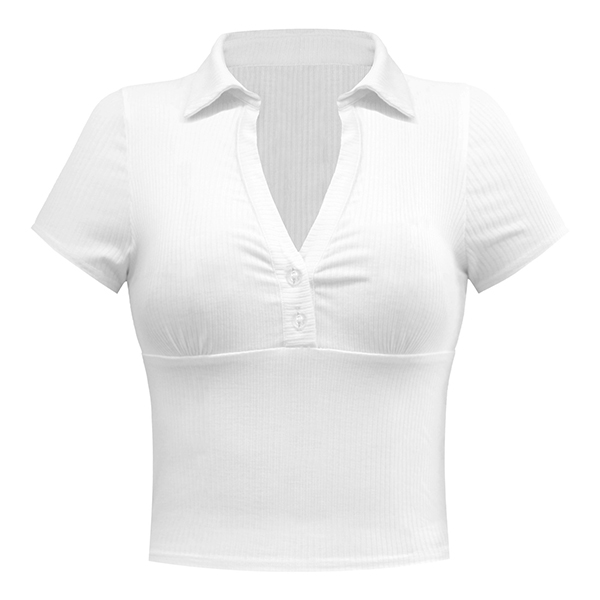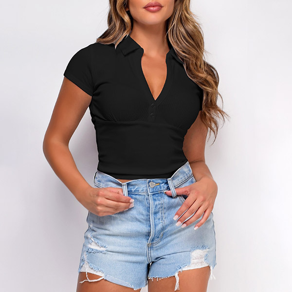 Fashion Solid Color Short Sleeve POLO Collar Slim Fit Crop Top