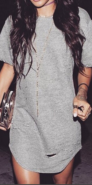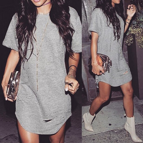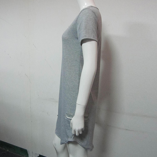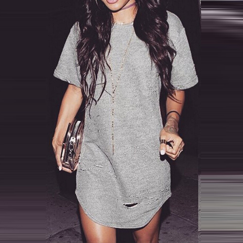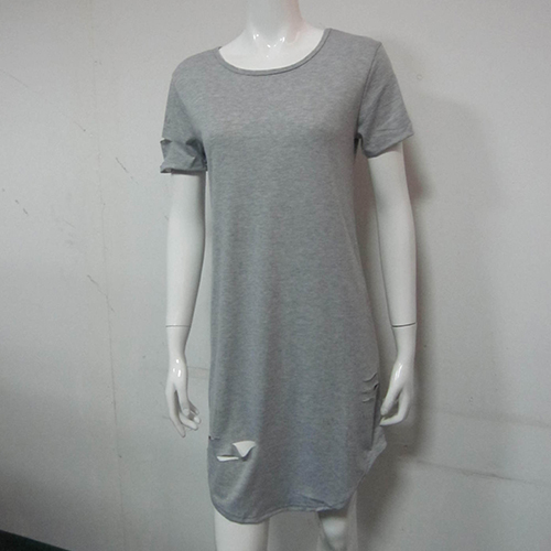 with short sleeve,round neck and arcuate hem design. You can add a stunning long necklace