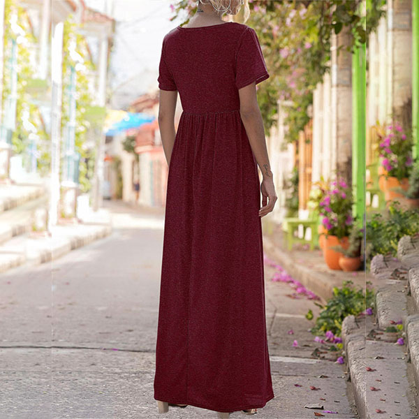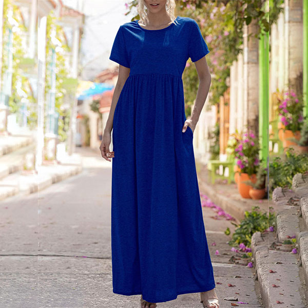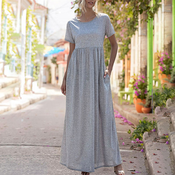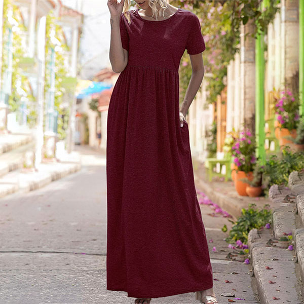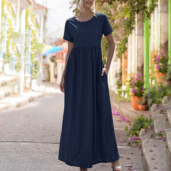 This dress boasts a solid color,which makes it look simple,generous yet stylish. Finished with short sleeve and round neck design,this dress bears a simple and classic design style,but it knows how to give you a cozy yet stylish styles. So why not take interest in it?