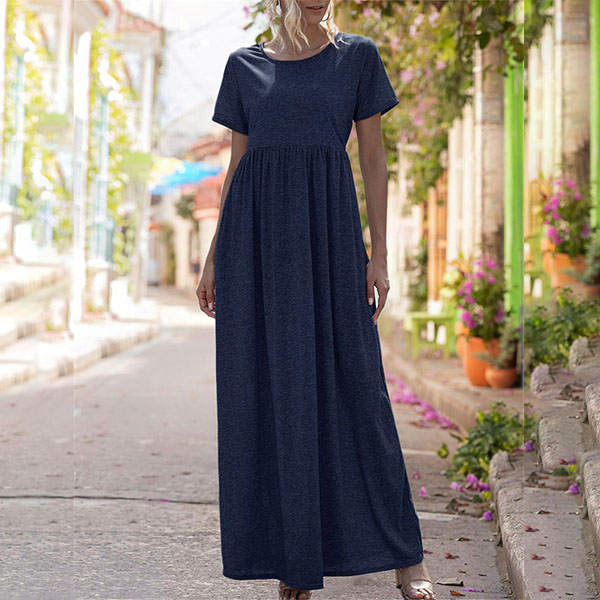 Fashion Solid Color Short Sleeve Round Neck Dress