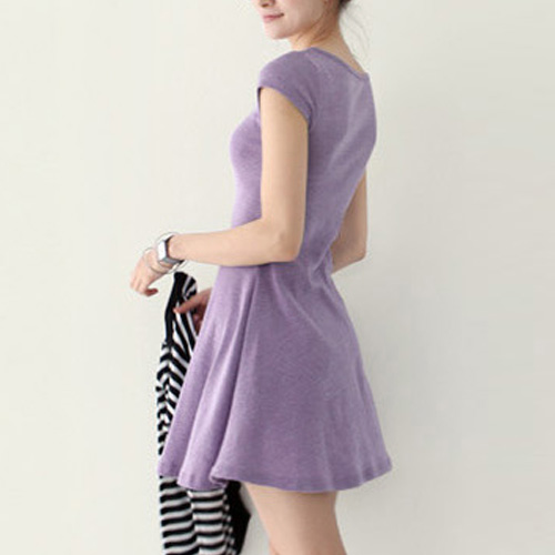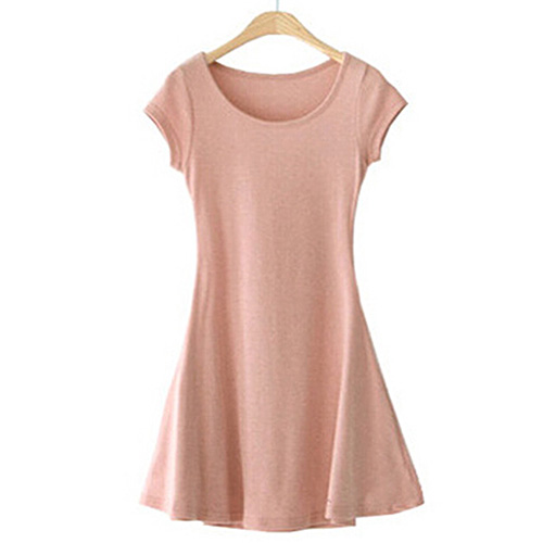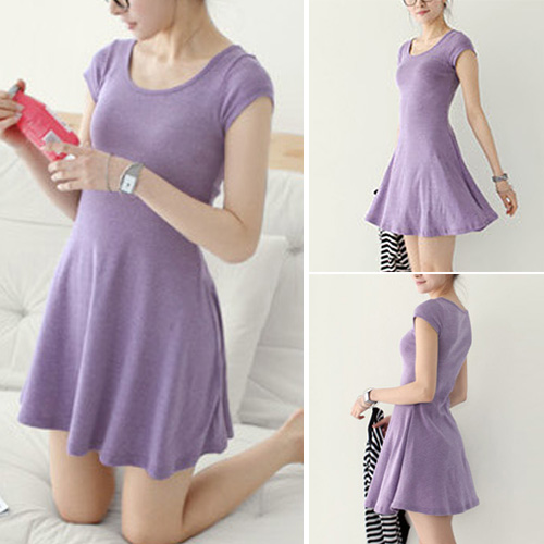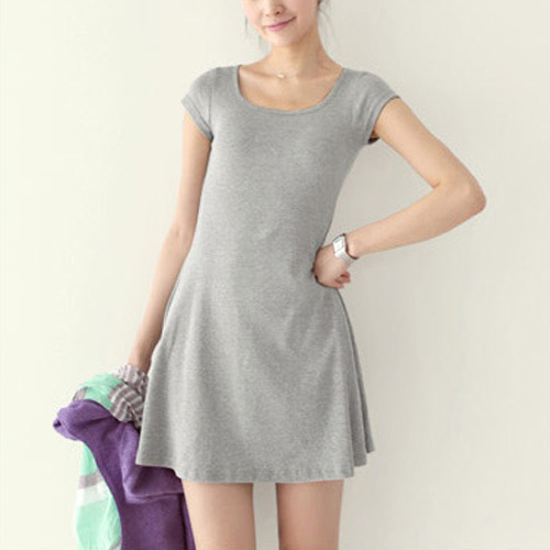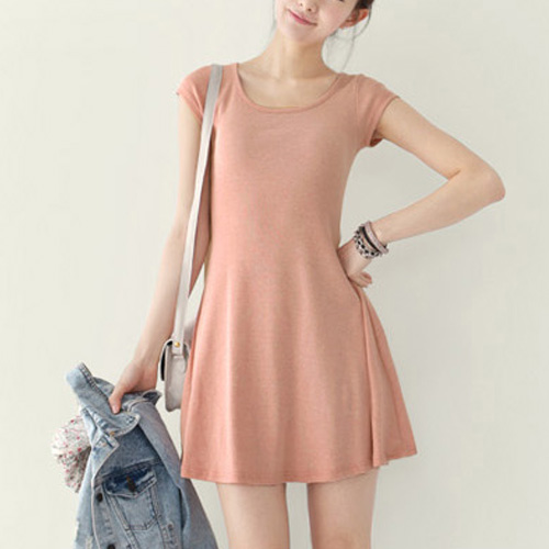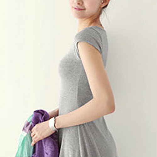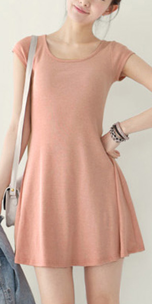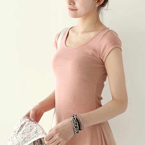 Solid color,with short sleeve and round neck design. In some cold days,you can pair it with