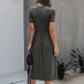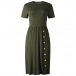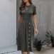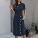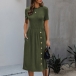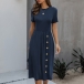 Fashion Solid Color Short Sleeve Round Neck Front-button Knit Dress