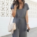 Fashion Solid Color Short Sleeve Round Neck High Waist Jumpsuit