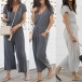 Wanna try a different style piece? Then you can make your eyes focused on this jumpsuit. Solid color style,finished with short sleeve,v-neck and high waist design,this piece not only can showcase your slender figure,but also can exude your style and charm. So why not enrich your wardrobe with this wonderful piece?
