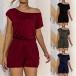 Fashion Solid Color Short Sleeve Round Neck High Waist Romper
