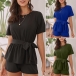Fashion Solid Color Short Sleeve Round Neck High Waist Romper