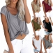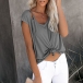 Fashion Solid Color Short Sleeve Round Neck Hollow Out Ripped T-shirt