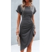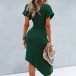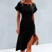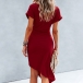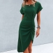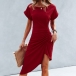 Fashion Solid Color Short Sleeve Round Neck Irregular Hem Dress