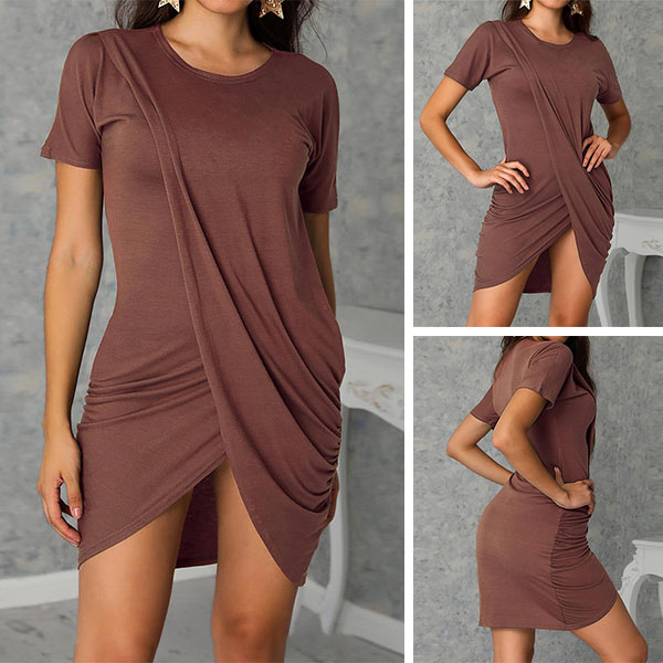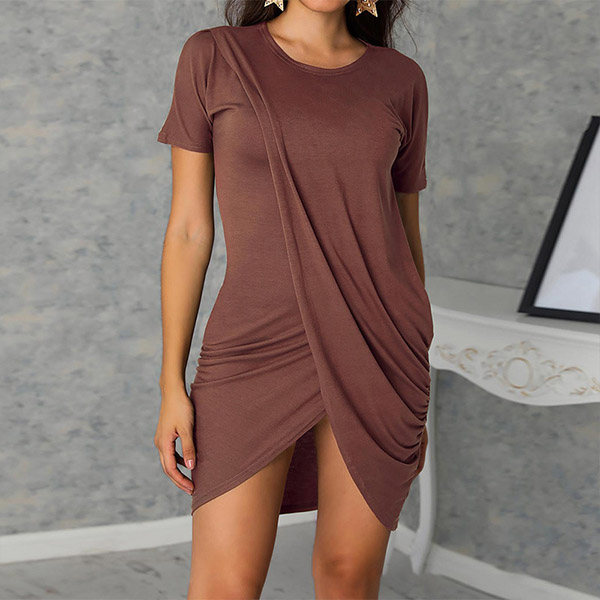 Fashion Solid Color Short Sleeve Round Neck Irregular Hem Dress