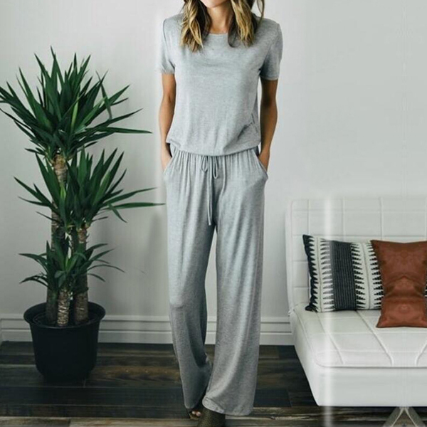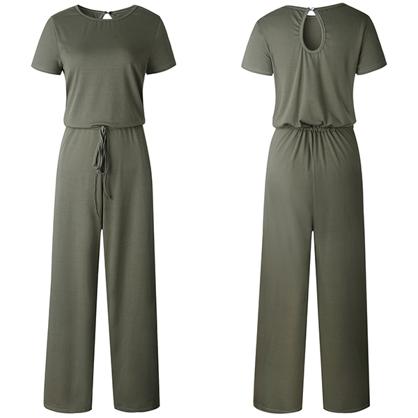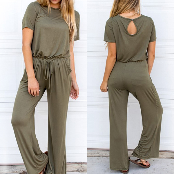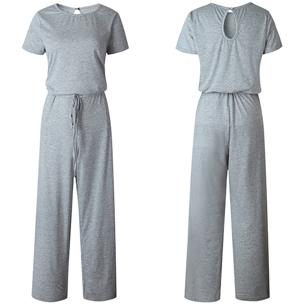 soft and breathable fabric,accompanied short sleeve,round neck and a sleek silhouette,this jumpsuit can give you a