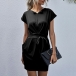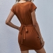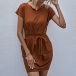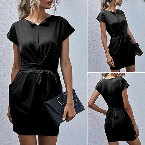 No matter for your busy workdays or casual weekends,this dress can be your wise choice. Solid color tone design makes it look simple,elegant and generous. Finished with short sleeve,round neck and waist strap design,this dress also can showcase your slender figure. Just need to match with your favourite heels,then you can be ready to go out!