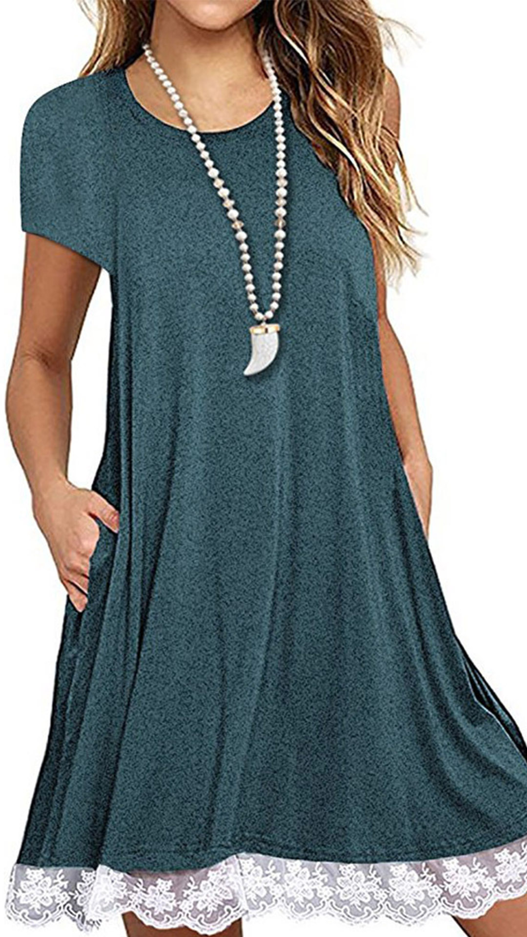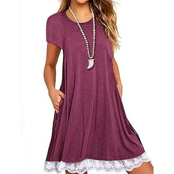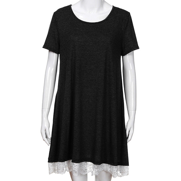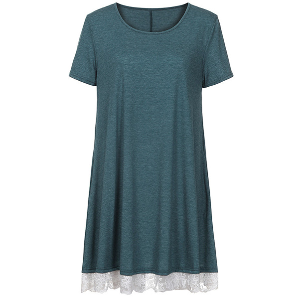 This comforting dress offers a perfect transition from your busy workdays to casual weekends. Crafted from soft and breathable fabric,with short sleeve,round neck and a loose silhouette,this dress is sure to give you an all-day comfort. And the lace spliced hem design will enhance its entire charm. Like it? Then don't miss this chance!