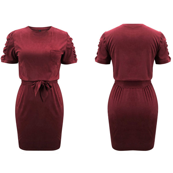 We know how rushed mornings can be - between packing lunches and going through a mental checklist, there's barely time to think about what you're going to wear for work! That's why we're loving this dress. Crafted in a solid color,with short sleeve and round neck design,this piece definitely knows how to give you a cozy yet stylish style. And the waist strap design can better showcase your slender figure. You can trust in this piece to be your wise investment.