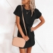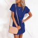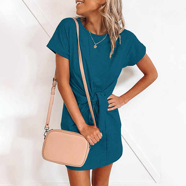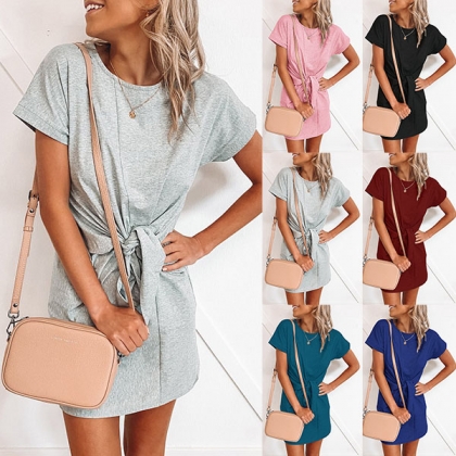 Fashion Solid Color Short Sleeve Round Neck Lace-up Dress