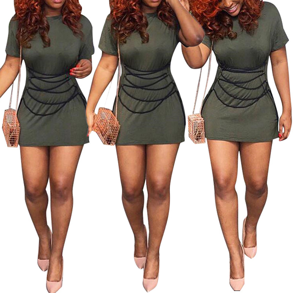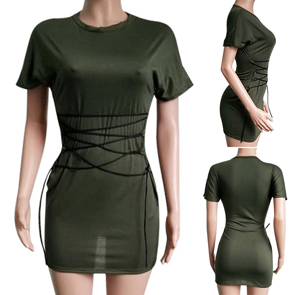 designed with short sleeve,round neck and a fit silhouette,simple,cozy and refined. Waist part with lace-up