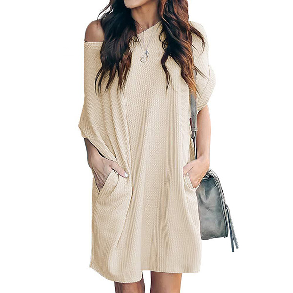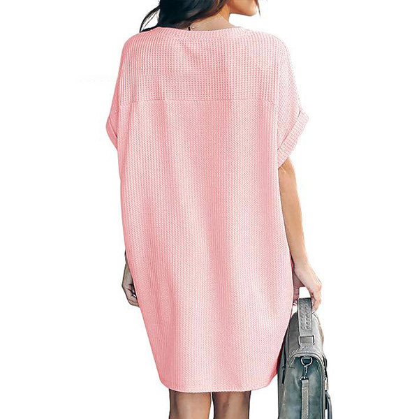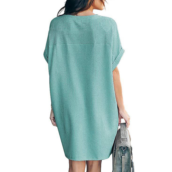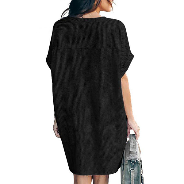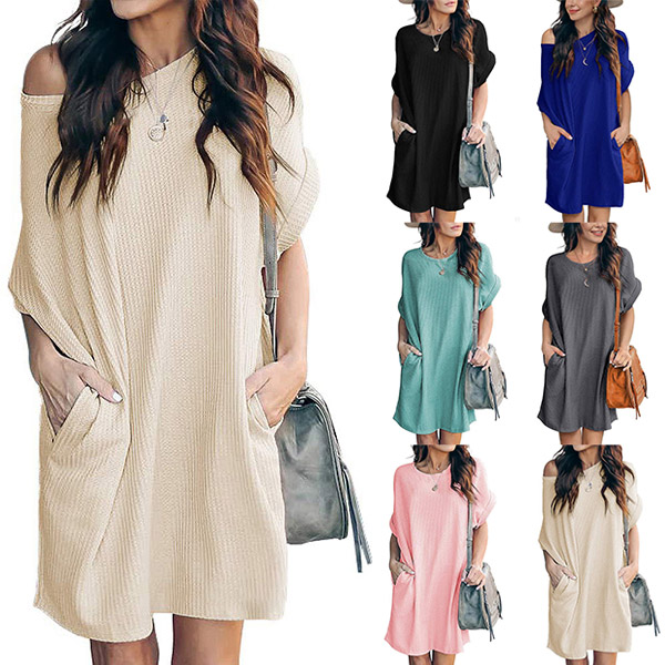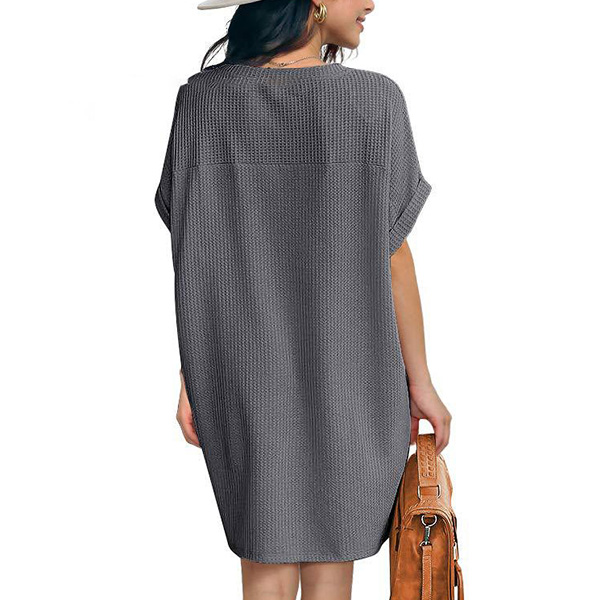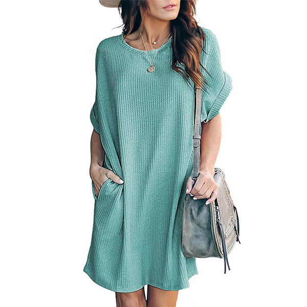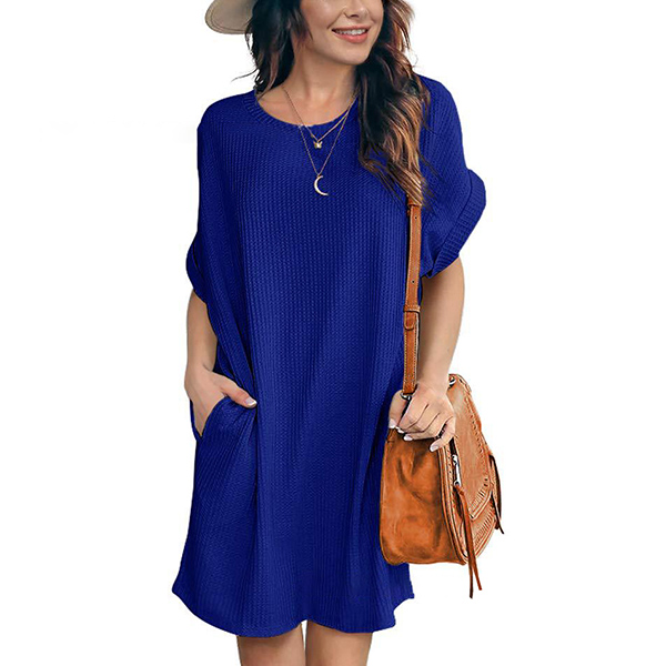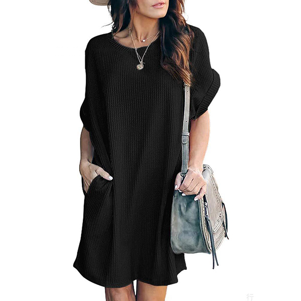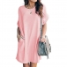 Fashion Solid Color Short Sleeve Round Neck Loose Dress
