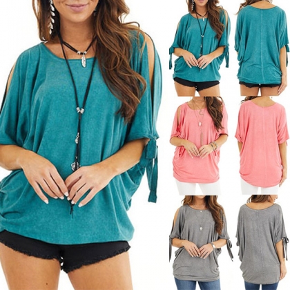 Not only can keep the comfy,but also can bring you more style,that's why we suggest you choosing this t-shirt. It boasts a solid color,with short sleeve,round neck and off-shoulder design,this t-shirt is perfect fit for matching with different style bottoms. You can add a necklace if you wanna look more beautiful and charming.