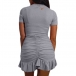 Fashion Solid Color Short Sleeve Round Neck Ruffle Hem Drawstring Dress