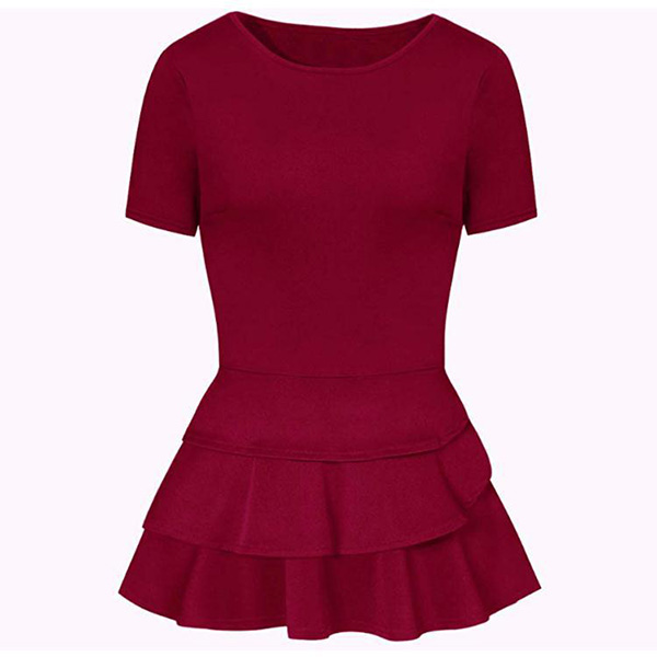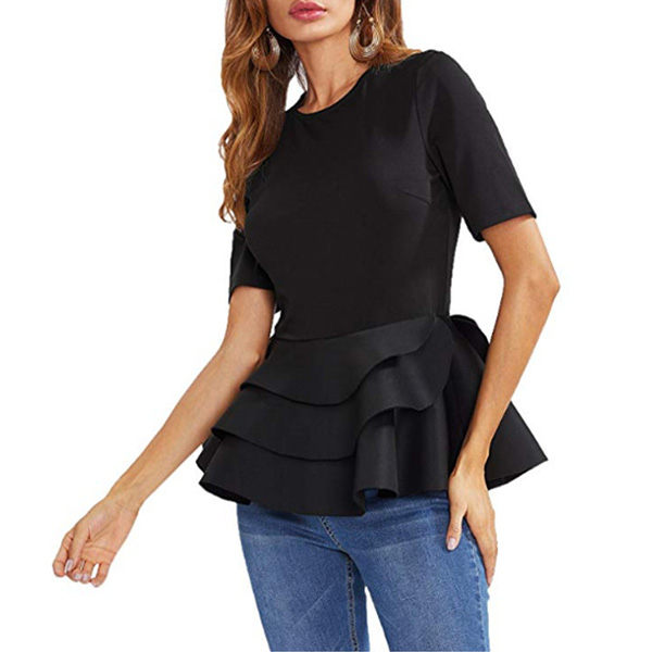 Fashion Solid Color Short Sleeve Round Neck Ruffle Hem Top