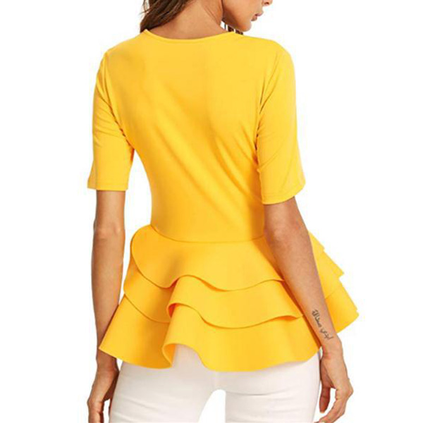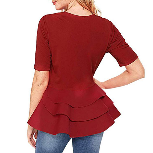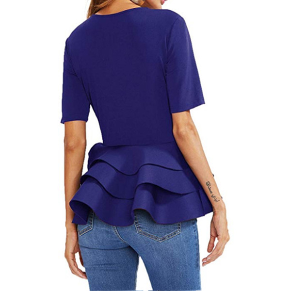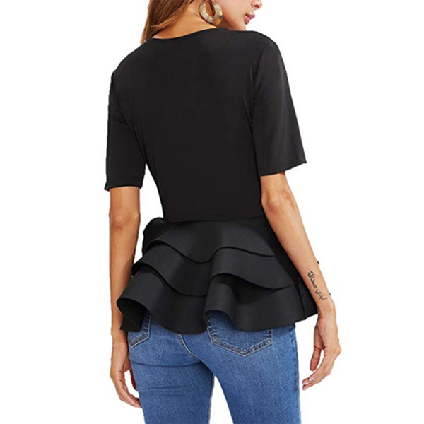 This top that combines of stylish,sweet and feminine vibes is worth to arouse your attention. Solid color style,the ruffle hem design is the highlight,which makes this piece look so distinctive and attractive. You can simply matching with your tight pants to start your wonderful day!
