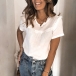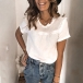 On some rushed mornings,you must have no time to thank about what to wear for your busy workdays. So you need such a stylish and all-match t-shirt. It boasts a solid color,with short sleeve,round neck and ruffle design,this piece can offer you the comfy and style. You just need to match with your favourite pants,then you can be ready to go out!