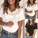 Fashion Solid Color Short Sleeve Round Neck Ruffle T-shirt