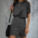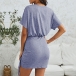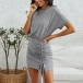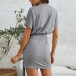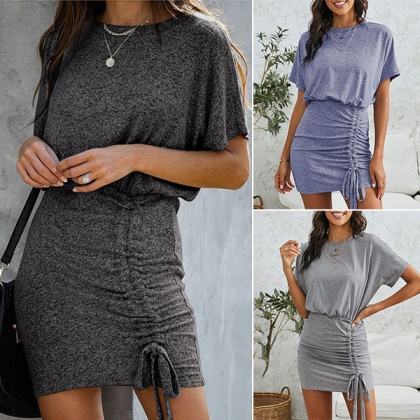 Fashion Solid Color Short Sleeve Round Neck Slim Fit Drawstring Dress