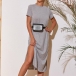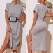 Fashion Solid color Short Sleeve Round Neck Slit Hem Dress