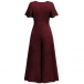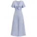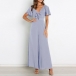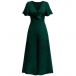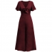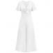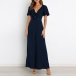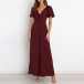 Fashion Solid Color Short Sleeve Self-tie V-neck Wide-leg Jumpsuit