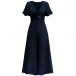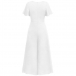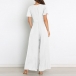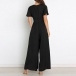 This fashionable and comfortable jumpsuit is perfect for any occasion! The solid color and simple design make it easy to style, and the short sleeves and self-tie V-neck add a touch of femininity. The wide-leg silhouette is flattering and comfortable, and the jumpsuit is easy to wear and care for.