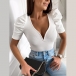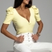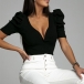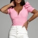 Designed with a classic yet flattering black tone,with a fit silhouette,this t-shirt definitely can showcase your perfect body-line. What's more,the ruffle and button details will further enhance its entire charm. Finished with short sleeve and round neck design,this wonderful top can offer you different fashion style by teaming with different style bottoms.