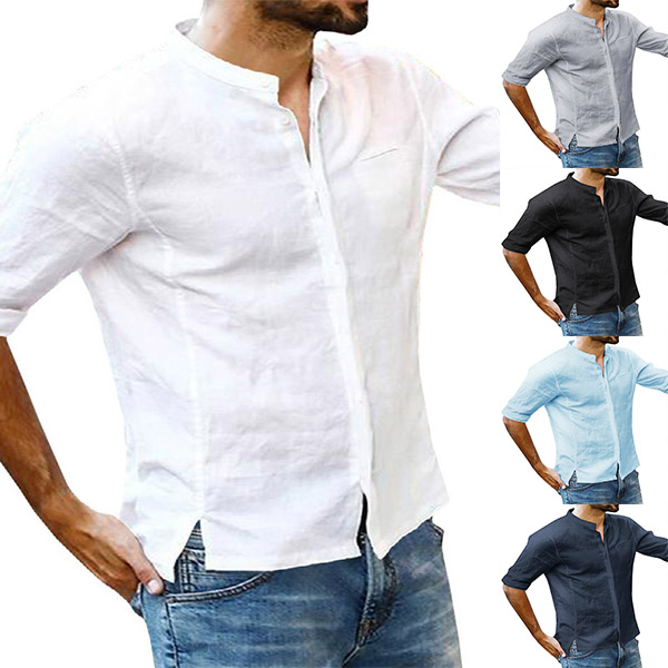 Hey, boy,the shirt is fantastic to highlight your sleek look.Solid color style, with short sleeve and