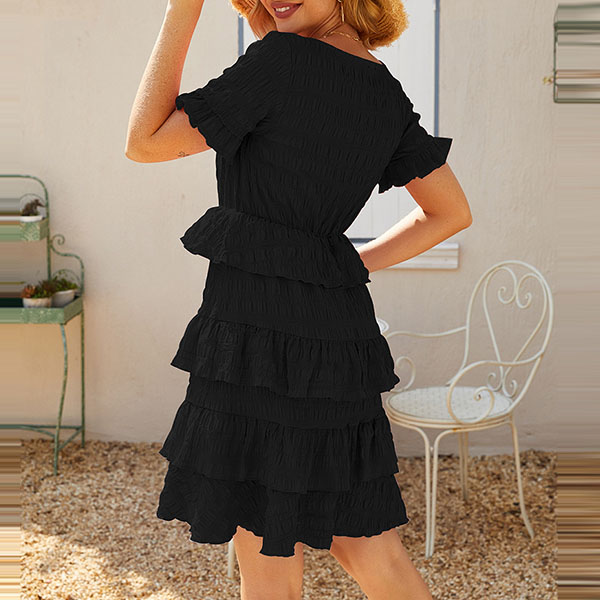 When you don't know what to wear for your night dating or weekend out,you can just make your eyes focused on this cake dress. It comes with a solid color,finished with short sleeve and square collar design,this dress knows how to keep you feeling comfy while it maintains your style. So why not take interest in it?