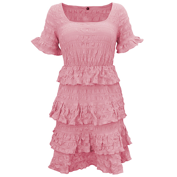 Fashion Solid Color Short Sleeve Square Collar Cake Dress