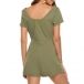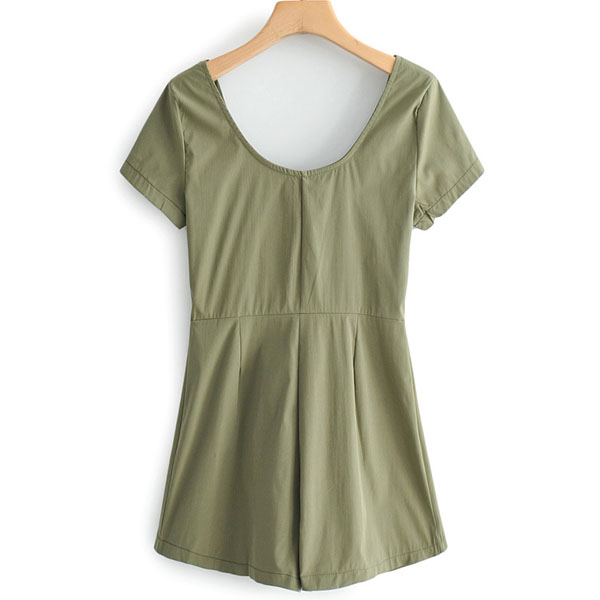 Fashion Solid Color Short Sleeve Square Collar Single-breasted High Waist Romper