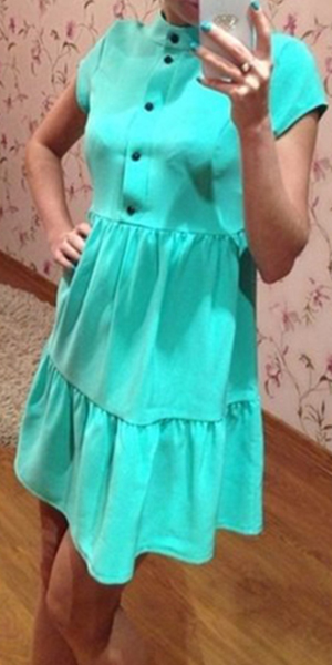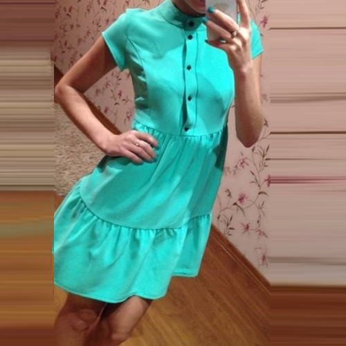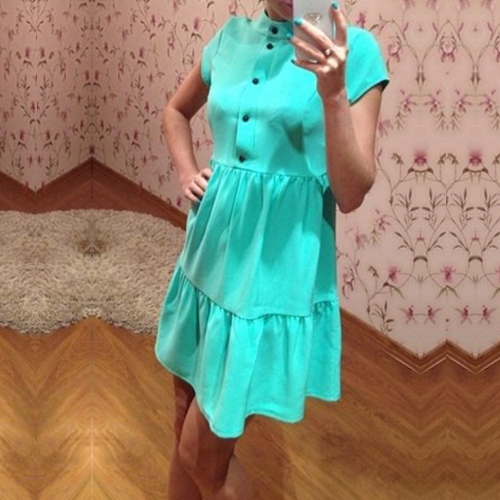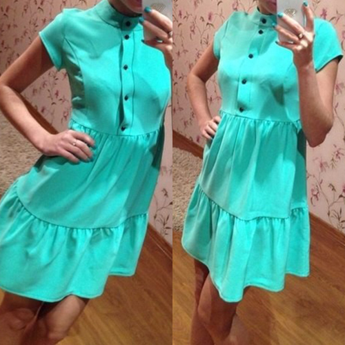 Fashion Solid Color Short Sleeve Stand Collar Dress