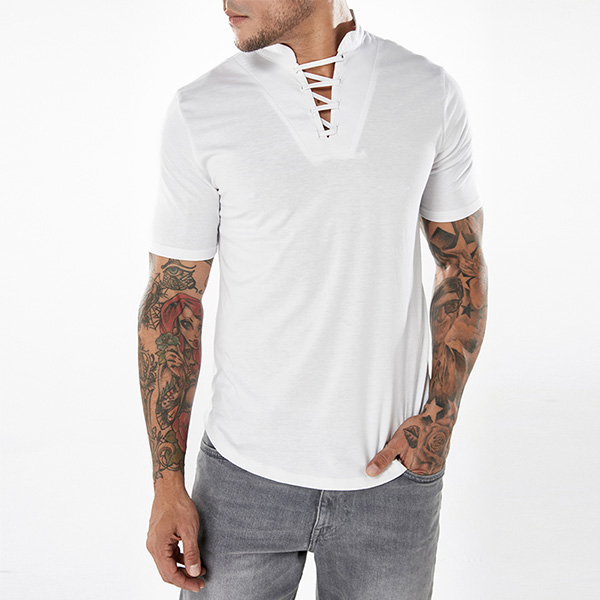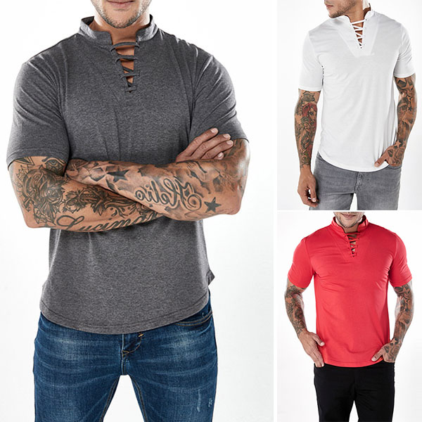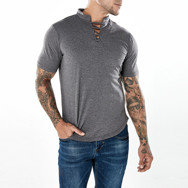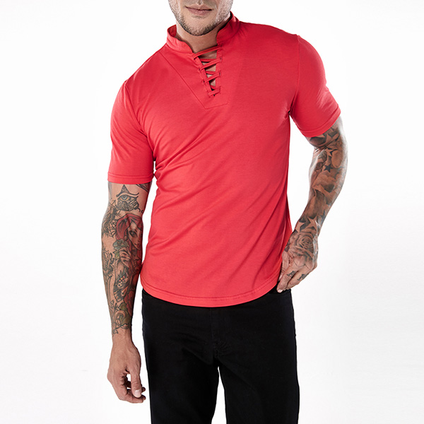 t-shirt for a relaxed style. Solid color style,designed with short sleeve,stand collar and soft fabric,