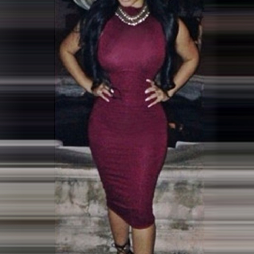 seductive curve. Outfitted with short sleeve,turtleneck and a mid length,this dress is a