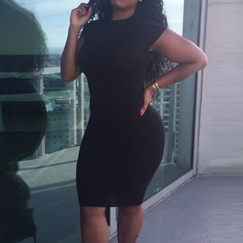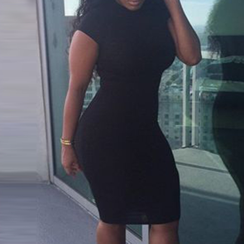 Fashion Solid Color Short Sleeve Turtleneck Sheath Dress