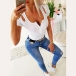 Fashion Solid Color Short Sleeve U-neck Hollow Out T-shirt