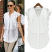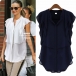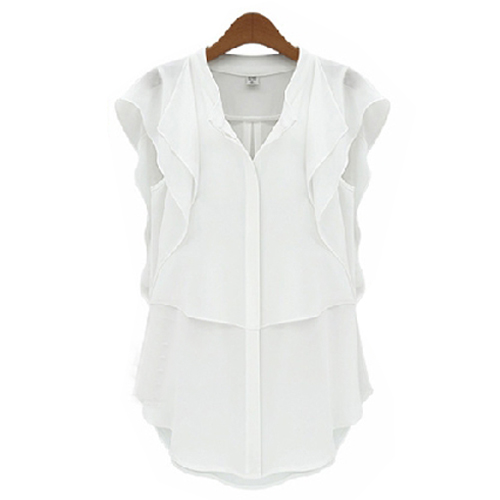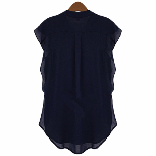 Features solid color,with short sleeve,v-neck and irregular hem design. Its breezy and soft chiffon