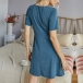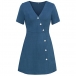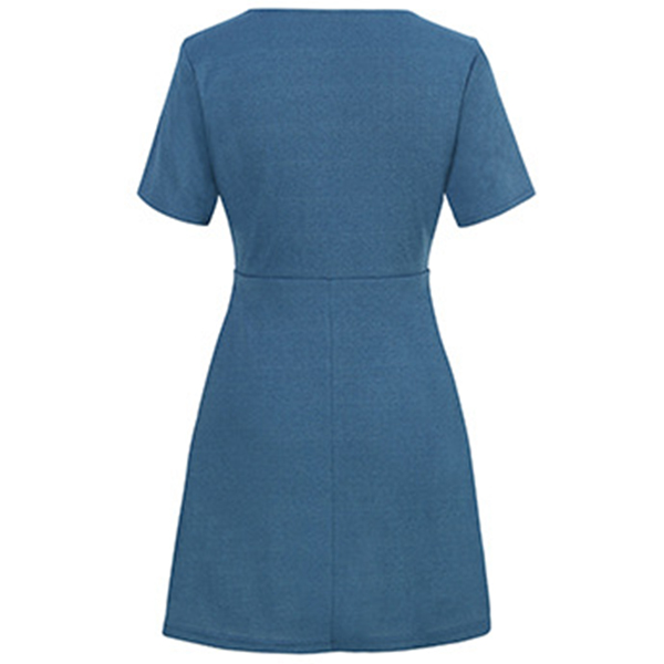 Fashion Solid Color Short Sleeve V-neck Front-button Dress